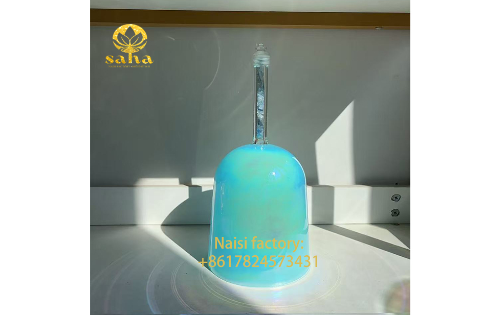 Himmelblauer Korpus: Der Korpus der Kristallschale ist himmelblau, eine erfrischende Farbe, die an klaren Himmel und ruhige Ozeane erinnert und zu einer friedlichen und entspannenden Atmosphäre beiträgt.